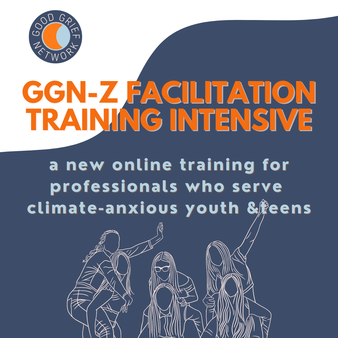 GGN-Z Facilitation Training will be returning with a new and improved hybrid model. Professionals who serve climate-anxious youth & teens are encouraged to take this course so they can better support those they work with and bring our GGN-Z program to their communities and organizations! Take this course at your leisure with three live practicum sessions (Feb 21, March 14, March 28) facilitated by Susan Igras and Paula Hendrix. Sign up here.